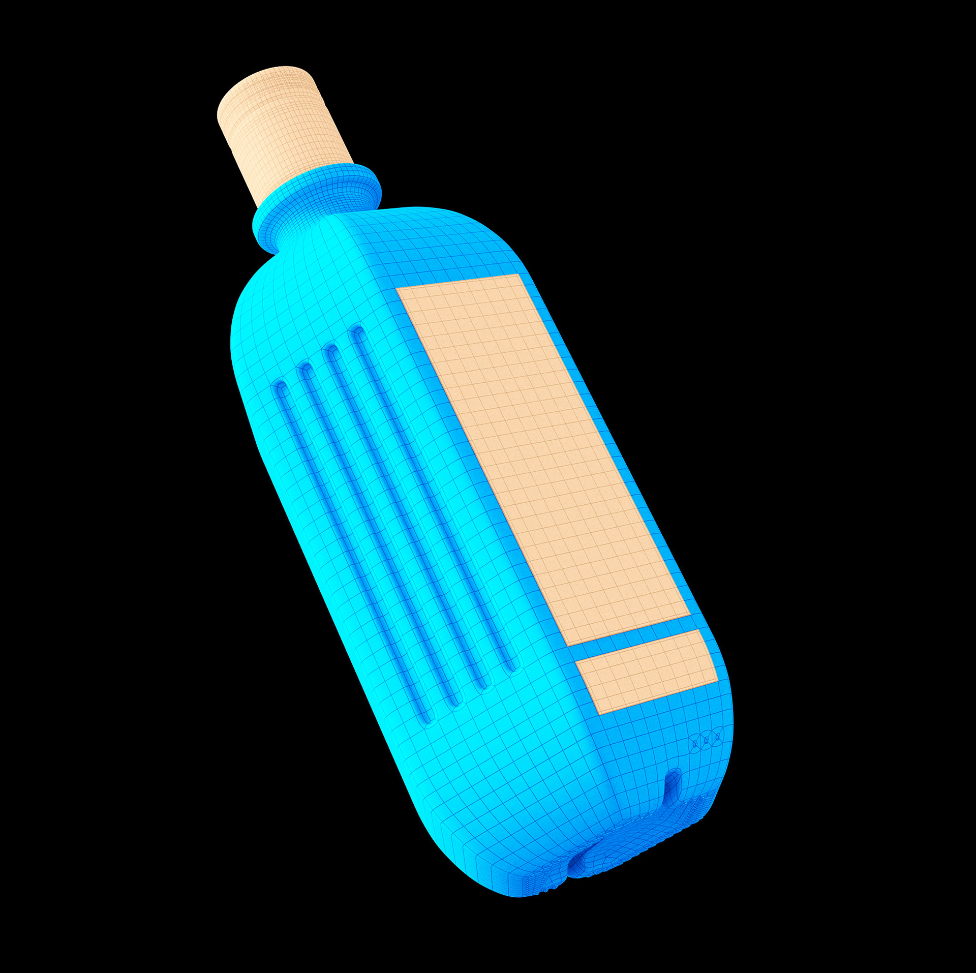 The bottle were designed and rendered in 3D on Foundry MODO 10.2.